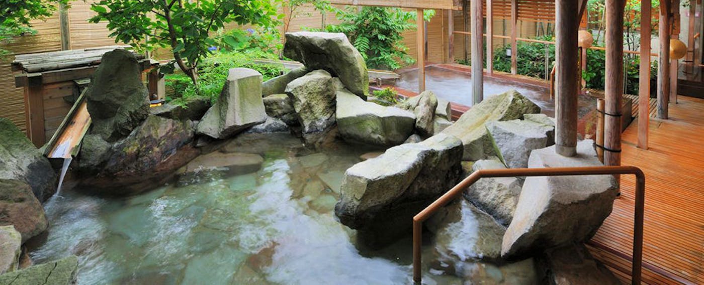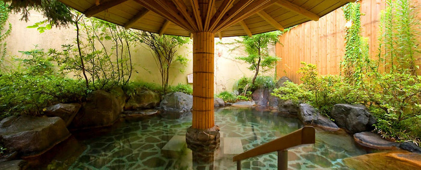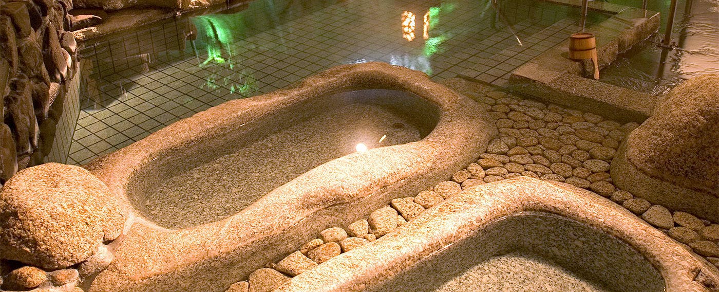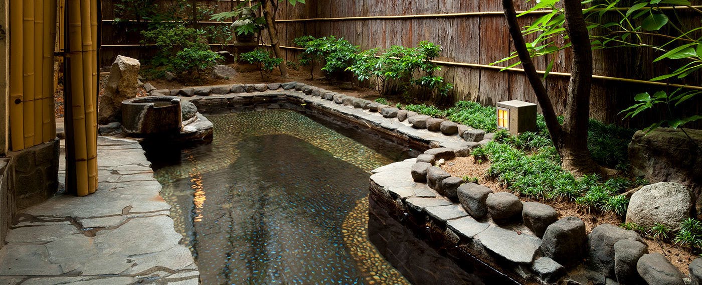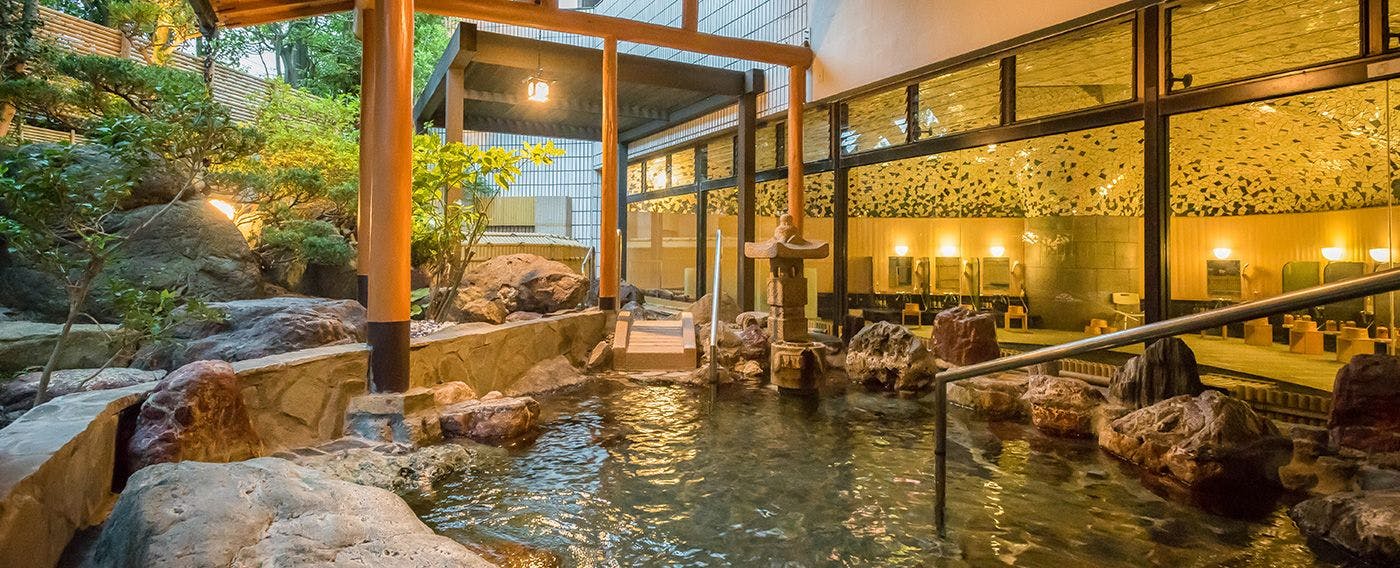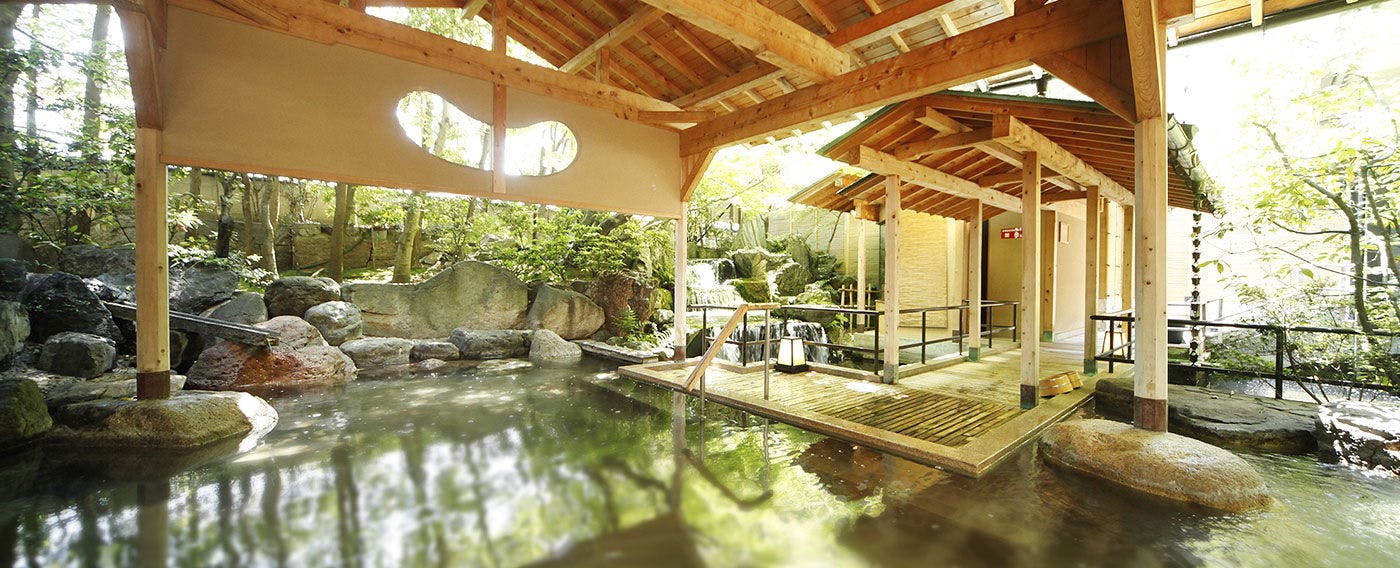 「庭園露天風呂をはじめ、様々な浴場を巡れます」