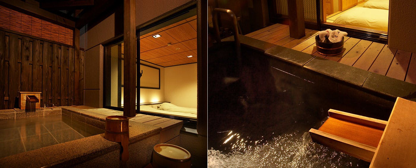 「全室に源泉かけ流しの露天風呂付きのゴージャスさ」