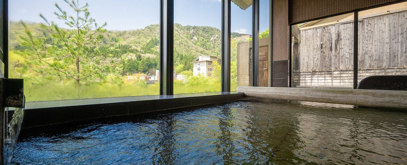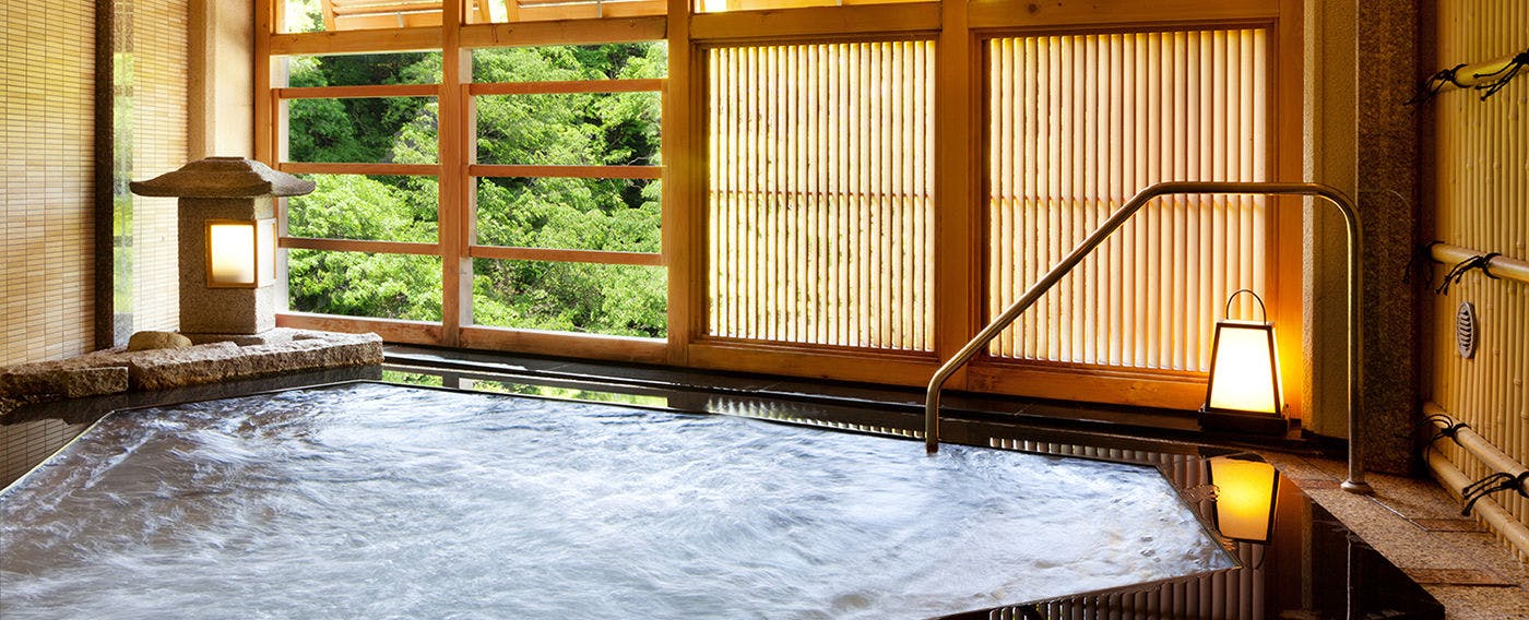 「渓流を望む温泉大浴場とまろやかな露天風呂が魅力」