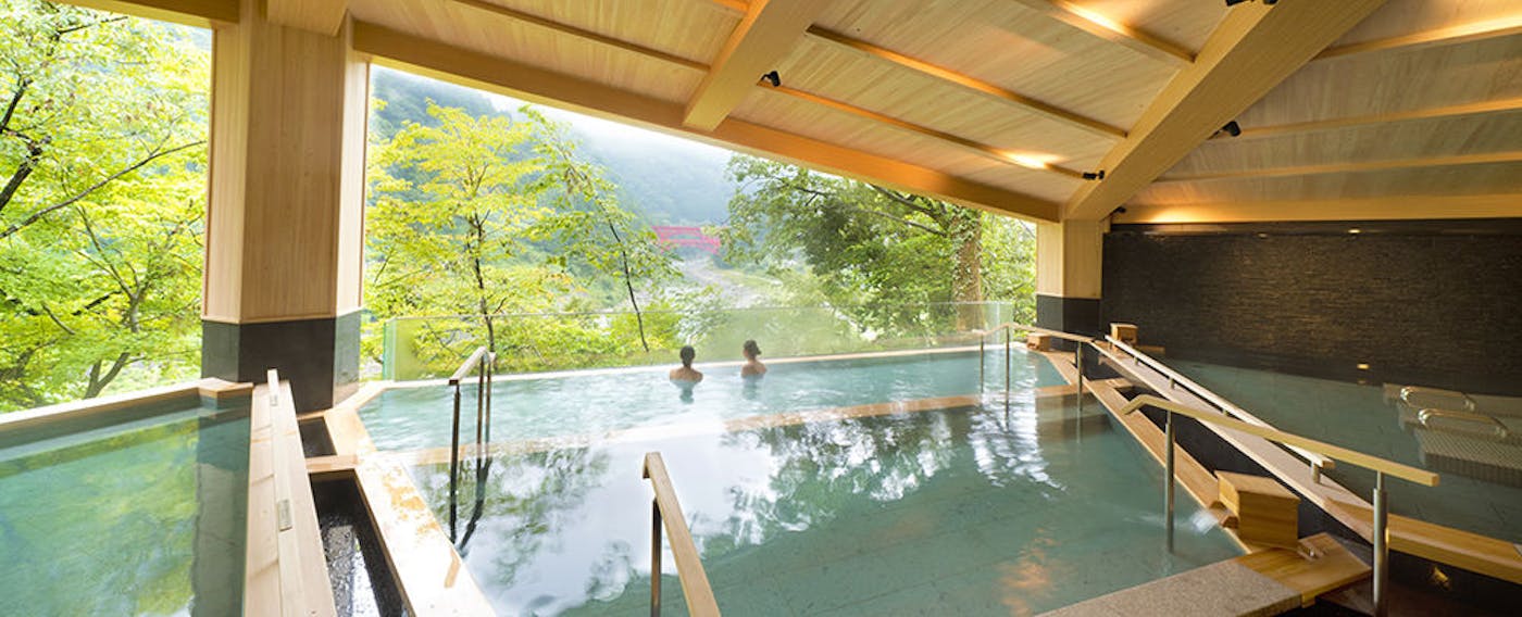 「宇奈月温泉街随一の広さを誇る大浴場でゆったりと」